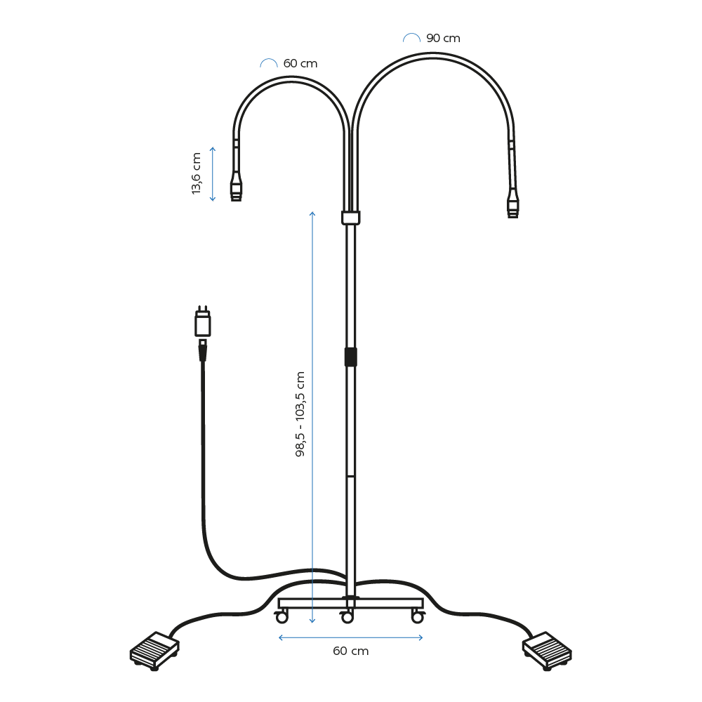 Każde ramię obsługiwane osobnym przełącznikiem nożnym - pełna kontrola bez odrywania rąk od pracy.